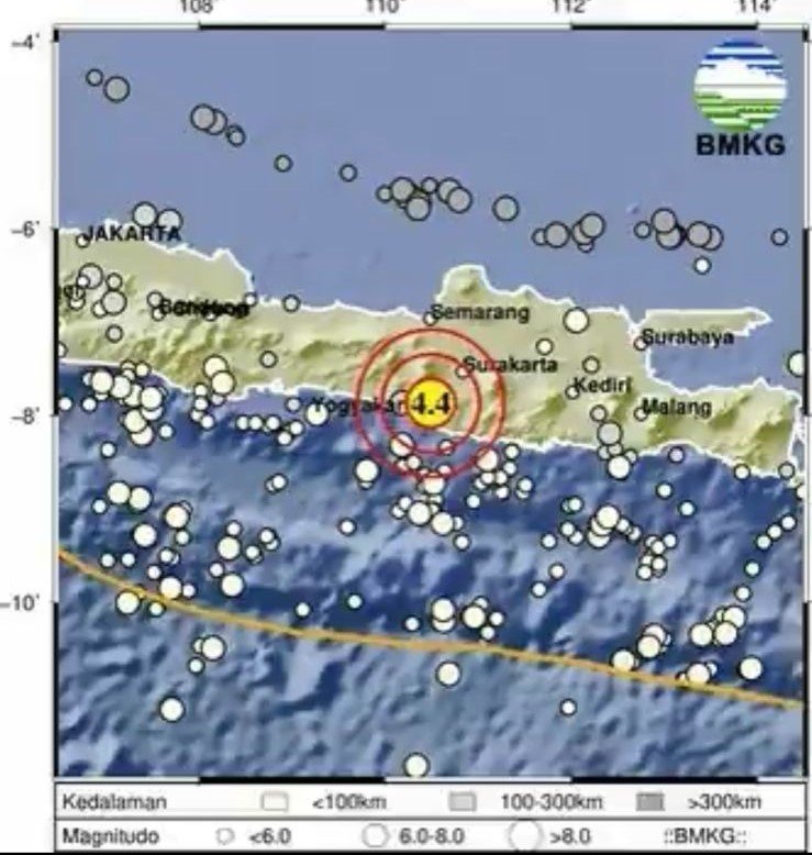 Gempa Magnitudo 4,4 Guncang Bantul Yogyakarta, Tidak Berpotensi Tsunami