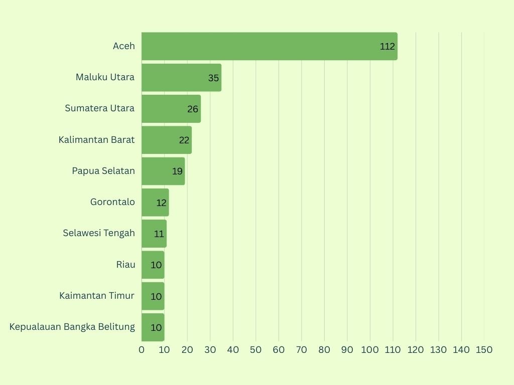 Pada periode pemantauan ini, Aceh menjadi wilayah dengan jumlah hotspot terbanyak, yakni 112 titik. Disusul Maluku Utara sebanyak 35 titik, dan Sumatera Utara sebanyak 26 titik.