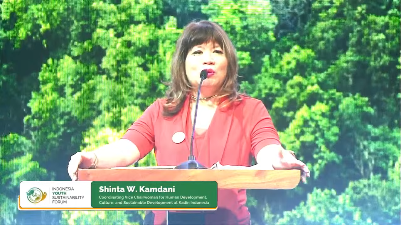 Greenmind, Jakarta — Wakil Ketua Umum Kadin Indonesia, Shinta Widjaja Kamdani, menyampaikan tiga pesan penting kepada generasi muda dalam The Youth Sustainability Forum sebagai bekal dalam membangun masa depan yang berkelanjutan. Tiga kunci tersebut adalah rasa ingin tahu, keberanian, dan kolaborasi.